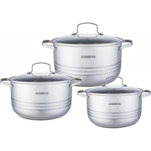Набор кастрюль состоит из 6 предметов: 3 кастрюли, 3 крышки Кастрюля 7.6 л (O26 х 15.0 см) Кастрюля 9.8 л (O28 х 16.5 см) Кастрюля 12.0 л (O30 х 17.5 см) Мерная шкала в каждой кастрюле Толщина стенки 0.5 мм Высококачественная нержавеющая сталь Многослойное термоаккумулирующее капсулированное индукционное дно Крышки из жаропрочного стекла с отверстием для выхода пара Подходит для всех видов плит, включая индукционные Нельзя использовать в духовом шкафу Подходит для мойки в посудомоечной машине