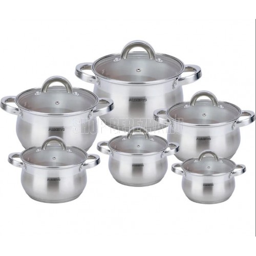 КОЛЛЕКЦИЯ Helge (Не цветная коробка) Кастрюля с крышкой 2.0 л (O16 х 10,5 см) Кастрюля с крышкой 3.0 л (O18 х 11,5 см) Кастрюля с крышкой 4.0 л (O20 х 12,5 см) Кастрюля с крышкой 5.0 л (O22 х 13,5 см) Кастрюля с крышкой 6.5 л (O24 х 14,5 см) Кастрюля с крышкой 8.0 л (O26 х 15 см) Нержавеющая сталь: марка AISI 201 Толщина стенки 0.5 мм Полировка снаружи: комбинированная Полировка внутри: матовая Мерная шкала: есть Индукция: есть Дно : 7-ми слойное (сендвич) Толщина дна: 3 мм + защитная пластина Ручки: стальные полые Крепление ручек: на клёпках Крышки: стекло Использование в духовке: нет Мытье в ПММ: не рекомендуется Для всех типов плит