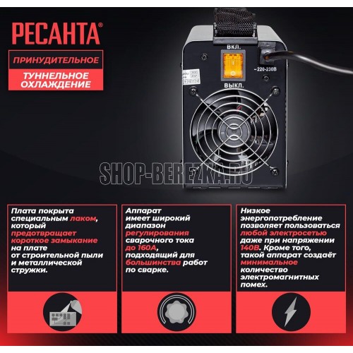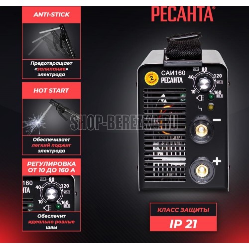 Напряжение питающей сети 140-260, Продолжительность нагружения, (40%) 70% 160A, Потребляемый ток 22, Класс защиты IP21, Серия САИ, Тип Инверторный, Тип сварки дуговая (электродом, MMA), Номинальная мощность 4800Вт, Напряжение холостого хода 85В, Напряжение дуги 26,4-26,4 В, Диапазон регулирования сварочного тока 10-160А, Максимальный диаметр электрода 4 мм, Наличие сетевой вилки