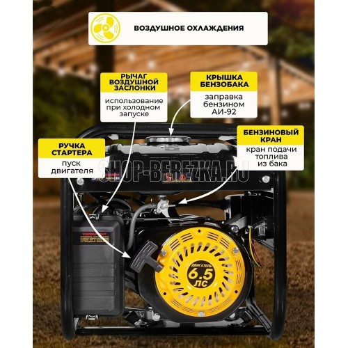 Напряжение, В 220. Стартер электростартер. Max мощность, кВт 2,7. Емкость топливного бака, л 12. Мощность номинальная при 220 В, кВт 2,5. Альтернатор синхронный. Производитель двигателя Huter. Модель двигателя 168f-2. Автозапуск (АВР) нет. Свеча зажигания NGK BP5ES. Дисплей нет. Обмотка альтернатора двигателя медь. Тип кожуха открытый. Вид топлива бензин. Объем масляного бака, л 0.6. Мощность максимальная при 220 В, кВт 2.7. Эл. выходы 380/220/12, шт 0/1/0. Число оборотов, об/мин 3600. Аккумулятор в комплекте опция. Расход топлива, л/ч 1.2. Уровень шума, дБ 67. Тип двигателя 4-х тактный. Степень защиты IP23. Контроль напряжения компаундный (традиционный). Колеса и ручки нет. Индикатор уровня топлива да. Выход 12V нет. Датчик масла да. Тип электростанции туристические.