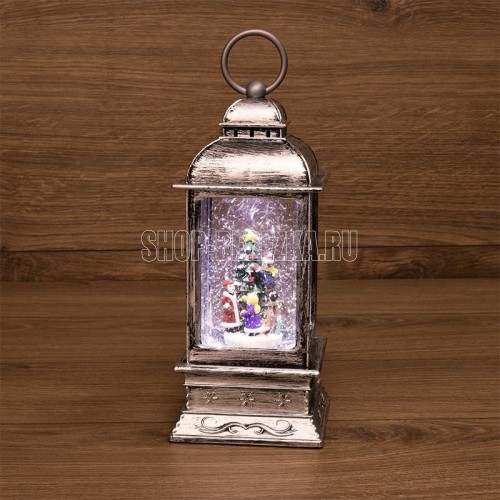 Декоративный фонарь «Рождество» — великолепное интерьерное украшение, символизирующее Новый год и Рождество. Светильник с эффектом снегопада и подсветкой выполнен в серебристом цвете, внутри находятся фигурки детей, наряжающих елку. Портативный фонарь питается от 4 батареек типа ААА или от сетевого блока через USB-шнур. Вьюга, создаваемая сверкающими блестками, кружится внутри колбы и подсвечивается белыми диодами. Декоративный фонарь станет прекрасным подарком детям и взрослым, принесет атмосферу зимней сказки в ваш дом.