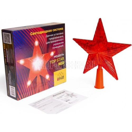 B52 "TOP STAR RED" МАКУШКА НА ЕЛЬ, красный, 10 LED, 2*АА