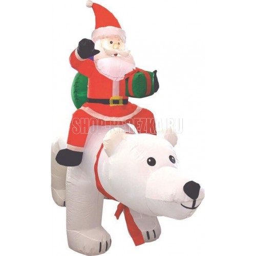 Представляем Вам новинку нашего ассортимента - надувные фигуры для украшения к Новому году! Новогодние игрушки, елочные украшения довольно традиционны и повторяются из года в год. Надувные новогодние украшения ярко выделят именно ваш магазин. Они наполняют пространство атмосферой праздника! Надувная фигура с Дедом Морозом верхом на белом медведе - это великолепное праздничное украшение, которое непременно создаст неповторимую атмосферу радости и веселья. Есть подсветка. Установка надувной фигуры занимает минимум времени и не требует специальных навыков. Работают от сети,компрес/колышк/верев,90*190*182см,IP44,220В