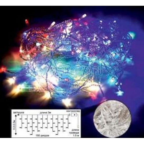 ECOLA N5RM03ELC 220V IP44 Бахрома 3x(0.2-0.5)м 150Led RGBW разноцветный