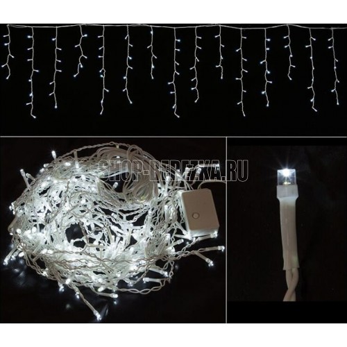 Электрогирлянда светодиодная "Сосульки". цвет белый. 200 LED ламп. длина 4м*0,5м. белый провод. для использования внутри помещений класс защиты IP20. питание от сети 220-240В, 50 Гц. мощность 3,6Вт. ПВХ, алюминий, медь, LED лампы. провод медь - толщина 1,6мм.