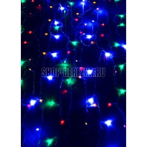 Интерьерная гирлянда "ДОЖДЬ" KOC_CUR-V106 - цветной занавес, шириной 1,5м и высотой 1,5м 144LED. цвет свечения - мульти для окна или стены на прозрачном проводе. Имеет 8 режимов свечения: вспышка; плавное исчезновение; постоянно включена; последовательный режим; комбинированный режим; мерцающий режим; медленный режим; режим волнами.Занавес не только украсит, но и дополнит интерьер, станет источником дополнительного освещения в комнате. IP20. Работает от сети.