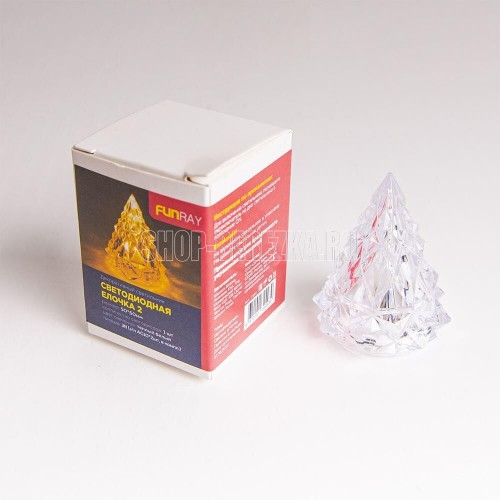 Декоративный светильник «Светодиодная елочка» это отличное решение для праздничного оформления пространства! Небольшая декоративная елочка излучает теплый белый свет, который красиво отражаясь от ее граней, создает неповторимый узор вокруг. Такая деталь интерьера позволяет создать уютную праздничную атмосферу и порадовать себя, близких и гостей. Работает светильник от батареек (AG10*3 (в компл.). Выполнен из прозрачного прочного пластика. Также декоративный светильник «Светодиодная елочка» будет пользоваться спросом в качестве новогоднего подарка, сувенира и корпоративного презента.