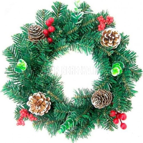 Венок хвойный новогодний. Материал: металл, пластик. размер : 30 см. упаковка: п/э пакет+стикер.