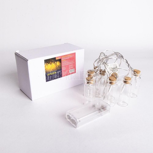Ищете интерьерные украшения для дома Обратите внимание на гирлянду FUNRAY Бутылки. Каждая из 10 штук миниатюрных бутылочек закупорена пробкой и перевязана веревочкой. Включённые, они создают красивую композицию для новогоднего оформления. Ретро гирлянду можно использовать для создания поделок, для декорирования столов и подоконников. В качестве украшения интерьера и для новогодней елки. Длина гирлянды - 1.5 метра, на которых расположено 10 светодиодов. Питание от батареек.