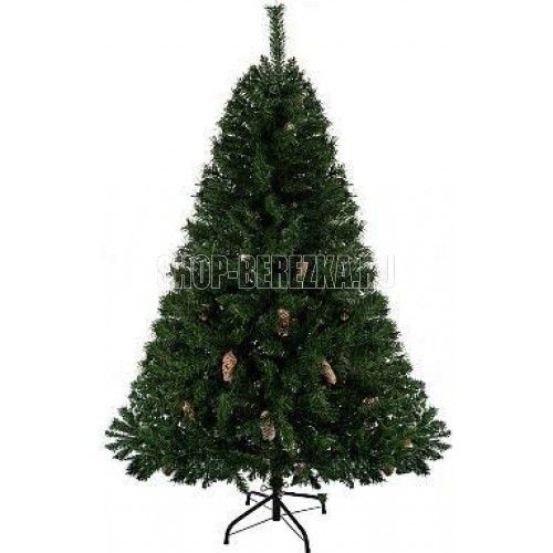 Материал; ПВХ, металл, шишки Цвет: зеленый Высота 150см Диаметр нижнего яруса 95см Кол-во шишек 41 шт Количество веток 515 шт Размер иголки Количество секций - 2 Подставка металлическая Тип крепления: на шарнирах Упаковка картон. Короб+стикер