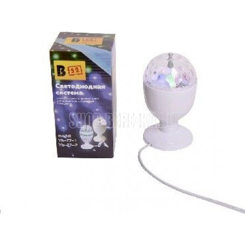 Размер 14,5*8,5см, 3 цвета свечения : зеленый, красный, синий, питание от сети 220В, рабочая температура системы составляет 15-30°C, энергопотребление 6Вт, вес 110гр, в комплекте идет YB-27, инструкция полностью на русском языке.