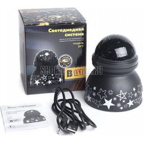 Светодиодная система B52 "SKY" - комнатная светодиодная система с проекцией звездного неба. Цвет свечения - теплый белый. Работает в автоматическом режиме. Рекомендуемое расстояние проекции - до 3м.