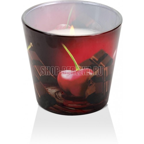 Свеча ароматизированная в стакане. Первая коллекция где представлены апалесин в шоколаде присутсвует цитрусовый аромат, и нотки шоколада, а второй ягодный вишневый с привкусом шоколада.