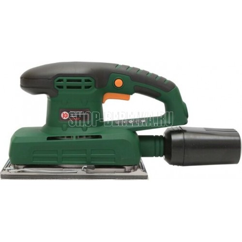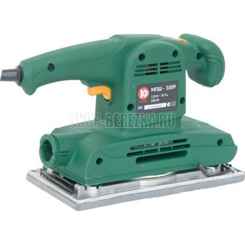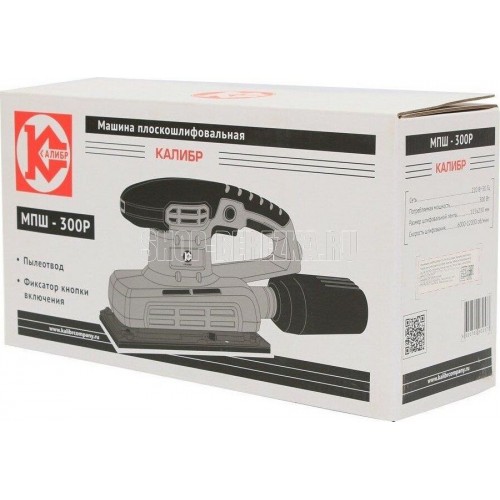 Ручная плоскошлифовальная машина Калибр МПШ-300Р,предназначена для сухой шлифовки (полировки) ровных поверхностей из различных материалов: древесины,металла,пластмассы,камня и других.Рабочим инструментом шлифмашины являются листы наждачной бумаги различной степени зернистости.Листы крепятся зажимами на плоской подошве из мелкопористого полимера.Плоскошлифовальная машина имеет пылеотвод,к которому можно подключить пылесос для эффективного удаления пыли.Регулятор частоты вибрации; Пылесборник; Кнопка фиксации для клавиши выключателя.Характеристики,Потребляемая мощность 300 Вт,Частота колебаний на холостом ходу 6000-12000 кол/мин,Рабочая поверхность подошвы 115х230 мм,Амплитуда колебаний 2.5 мм,Электродвигатель Однофазный коллекторный,Длина шнура питания с вилкой,не менее 2.5 м,Класс безопасности (ГОСТ Р МЭК 60745-1-2011) II,Номинальное напряжение/Частота 230 В/50 Гц,Габариты в упаковке (ДхШхВ) 350х130х193 мм,Вес (брутто/нетто) 2.7/2.6 кг