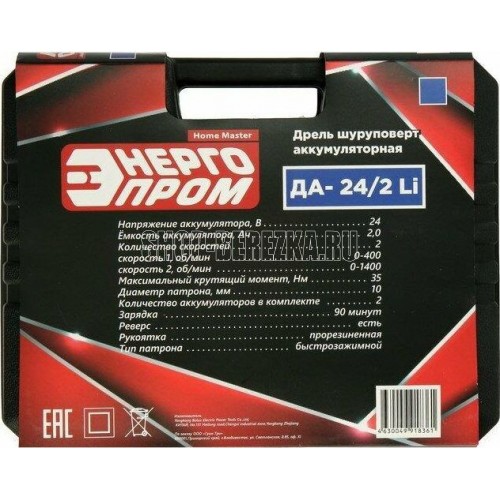 ЭНЕРГОПРОМ HOME MASTER ДА-24/2 LI 24В, 2аккум., кейс 00-00016419