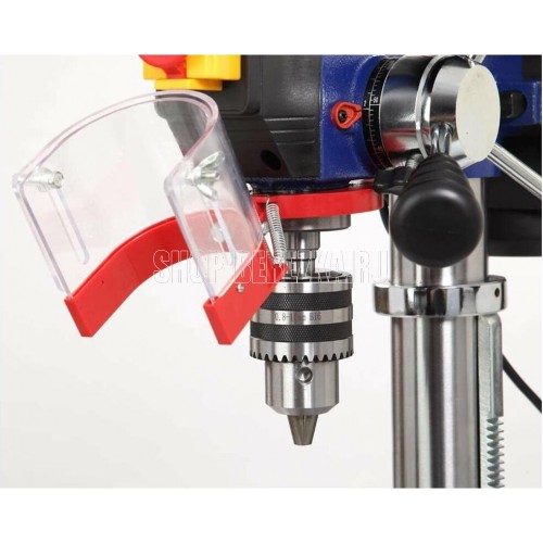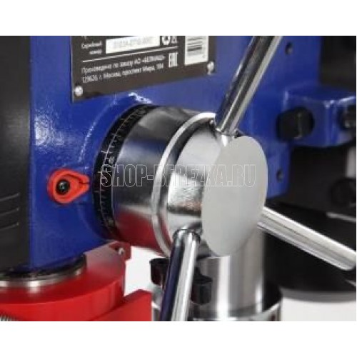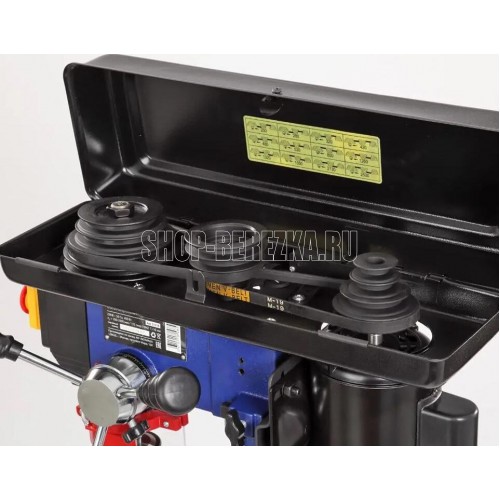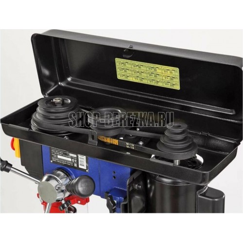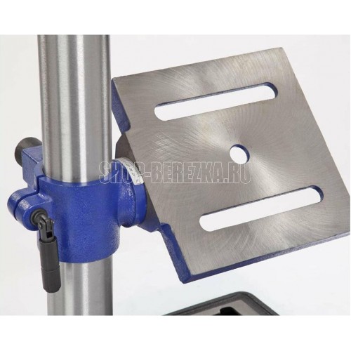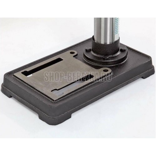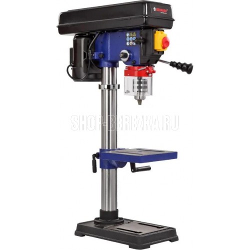 Станок сверлильный вертикальный Мощность 450 Вт Напряжение питающей сети 230 В Частота тока 50 Гц Тип электродвигателя Асинхронный Частота вращения шпинделя 200 / 280 / 320 / 420 / 480 / 530 / 800 / 1260 / 1320 / 1550 / 2130 / 2500 об/мин. Диаметр хвостовика зажимаемого инструмента 1?16 мм Тип ремня Клиновые (М19, M20) Тип передачи Ременная Материал рабочего стола Чугун Размер рабочего стола (ДхШхТ) 196х196 мм Количество пазов 2 шт. Размер основания 348 ? 215 мм Угол наклона стола -45…+45 ° Количество скоростей шпинделя 12 Конус шпинделя В16 Тип патрона Ключевой, трехкулачковый Максимальный диаметр сверления в дереве 50 мм Максимальный диаметр сверления в стали 16 мм Ход пиноли шпинделя 60 мм Максимальное расстояние между шпинделем и столом 430 мм Максимальное расстояние между шпинделем и основанием 545 мм Материал основания станка Чугун Расстояние шпиндель-колонна 125 мм Толщина стенки колонны 2 мм Расстояние от центра оснастки до колонны 4,92 дюйм Посадка патрона B16