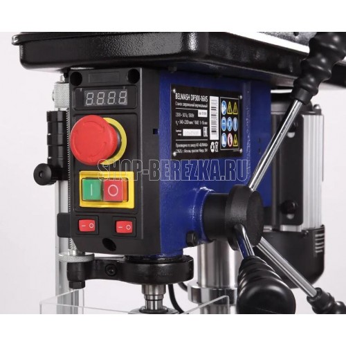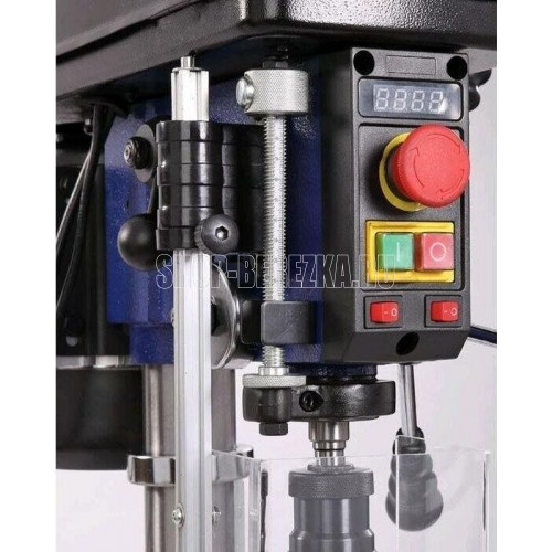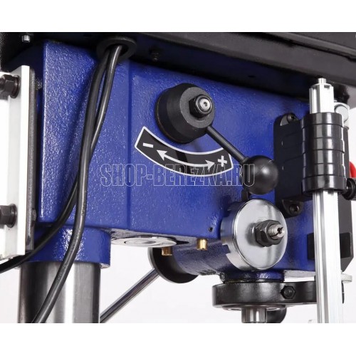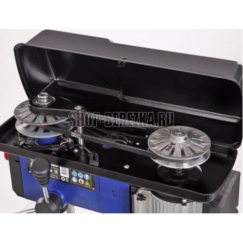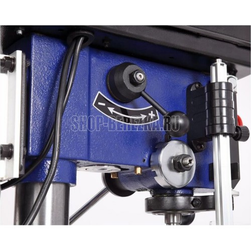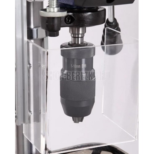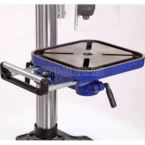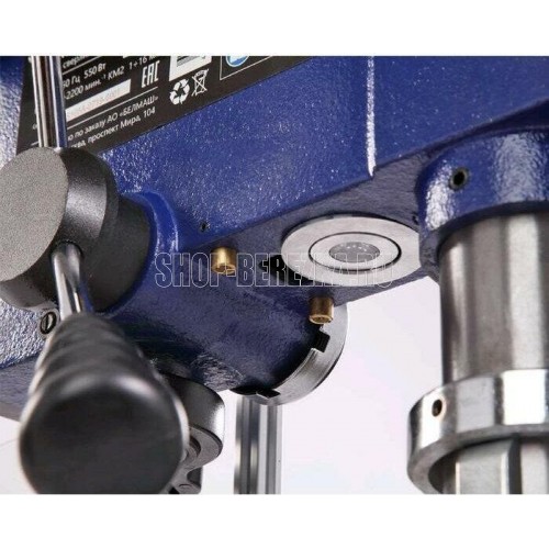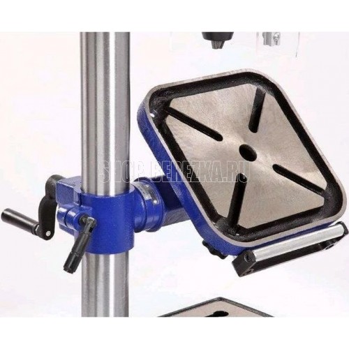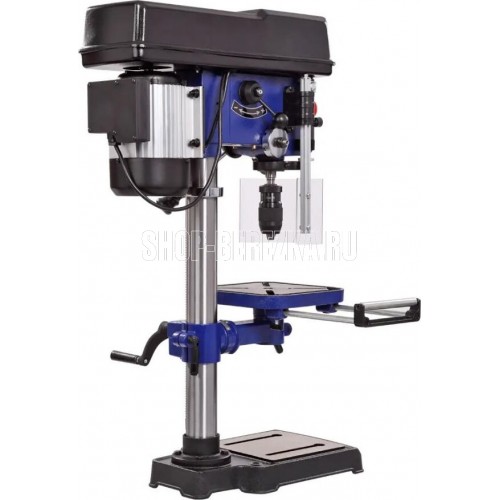 Станок сверлильный вертикальный. Мощность 550 Вт Напряжение питающей сети 230 В Частота тока 50 Гц Тип электродвигателя Асинхронный Частота вращения шпинделя 340?2200 об/мин. Диаметр хвостовика зажимаемого инструмента 1?16 мм Тип ремня Клиновой вариаторный зубчатый (V10х900) Тип передачи Ременная Материал рабочего стола Чугун Размер рабочего стола (ДхШхТ) 243 х 243 мм Количество пазов 4 шт. Размер основания 413 ? 246 мм Угол наклона стола -45…+45 ° Конус шпинделя КМ2 Тип патрона Быстрозажимной Максимальный диаметр сверления в дереве 50 мм Максимальный диаметр сверления в стали 16 мм Ход пиноли шпинделя 90 мм Максимальное расстояние между шпинделем и столом 355 мм Максимальное расстояние между шпинделем и основанием 525 мм Материал основания станка Чугун Расстояние шпиндель-колонна 153 мм Лазер - указатель Есть Толщина стенки колонны 2 мм Подсветка Есть Расстояние от центра оснастки до колонны 6 дюйм Посадка патрона B16 Габаритный размер (Д х Ш х В) 600 х 520 х 900 мм