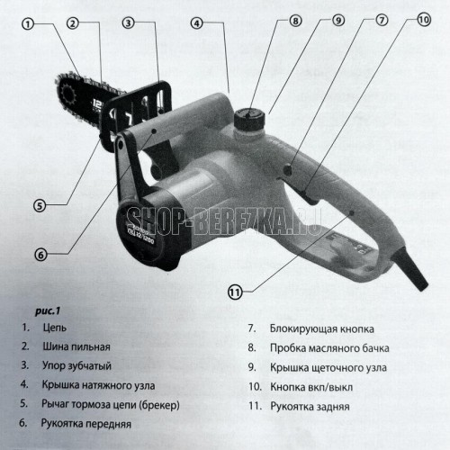 Мощность: 1,2 кВт Напряжение: 220 Вт Расположение двигателя: поперечное Длина шины: 12 / 30 см Шаг цепи: 3,8 / 1,3 мм
