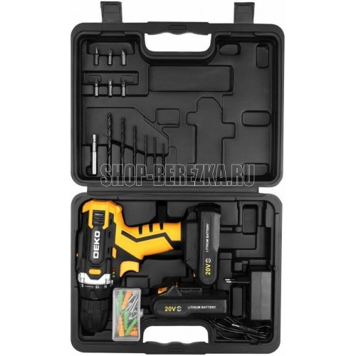 DEKO Banger 20V ONE + в кейсе + набор 63 инструмента для дома, 20В, 2х1.5Ач 083-1043