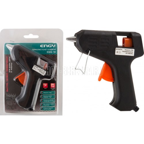 Назначение: прибор предназначен для склейки дерева, пластика, металла, стекла, керамики, линолеума, пенопласта, а так же фиксации с помощью клея различных объектов на картоне, бумаге и текстиле и т.д Может использоваться при работах по герметизации. Напряжение/Частота: 220-240В/50Гц Мощность: 10Вт Диаметр клеевых стержней: 7 мм Разогрев до рабочей температуры за 3-5 мин Два клеевых стержня в комплекте Удобный дизайн Откидная подставка для возможности поставить прибор в перерывах между работой по склеиванию. Материалы: Металл, пластик, резина
