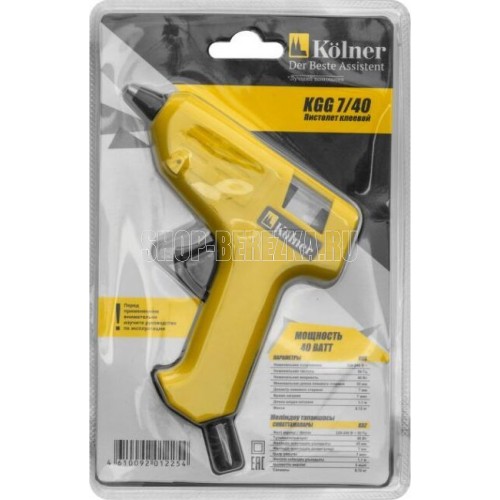 KOLNER KGG 7/40 Клеевой пистолет Kolner KGG 7/40 40Вт, клеевые стержни, 7мм кн7-40 склеивает чистые, сухие и обезжиренные поверхности различных материалов в бытовых условиях. Малое потребление электроэнергии всего 40 Вт обеспечивает экономичное использование. Во время перерыва пистолет удобно устанавливается на металлическую опору. Питание от сети 220В Мощность (Вт) 40 Диаметр стержня, мм 7