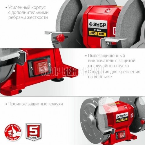 Тип станка За точ ной Тип электродвигателя Асин хрон ный Мощность, Вт 400 Частота вращения, мин-1 2950 Диаметр круга, мм 200 Диаметр посадочного отвверстия, мм 32 Толщина точильного круга, мм 20 Зернистость круга №1 60 Зернистость круга №2 80 Пылезащитный выключатель есть Защитные экраны есть Режим работы S2, 15 мин