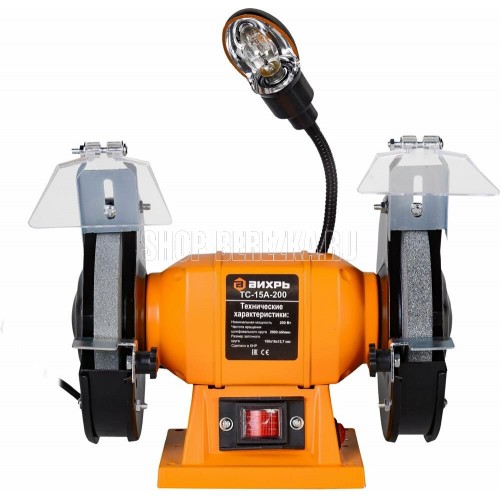 Напряжение питающей сети, В 220-230В, ~50 Гц; Мощность, Вт 200; Бренд Вихрь; Габариты упаковки 0.429 ? 0.247 ? 0.468 м; Размер заточного круга, мм 150x16; Частота вращения, об/мин 2950; Вес, кг 5.5 кг; Диаметр посадочного отверстия диска, мм 12.7; Подсветка рабочей зоны Да