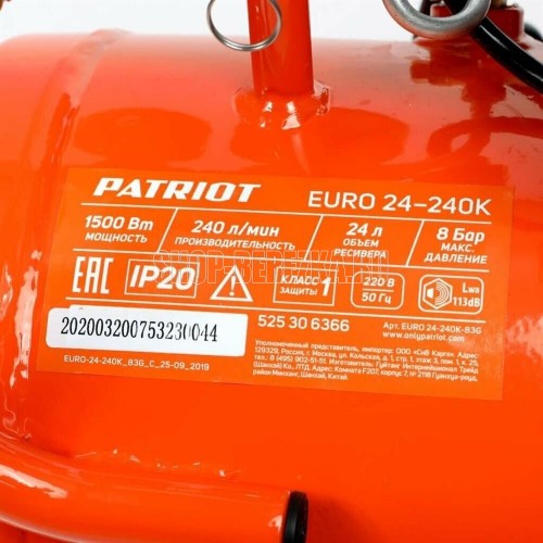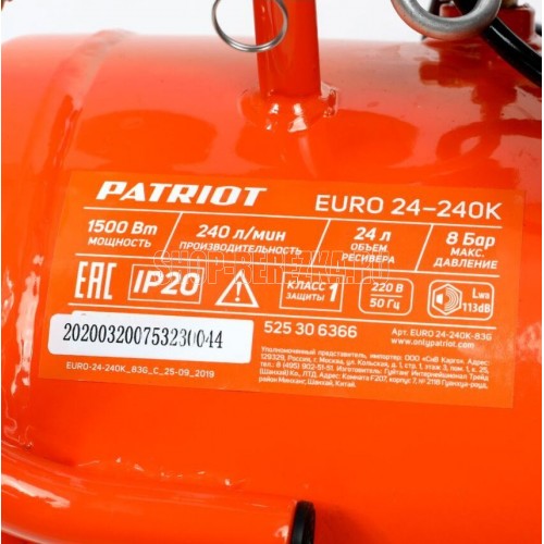 PATRIOT 525306366 EURO 24 240K Компрессор поршневой масляный