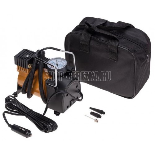 Компрессор автомобильный металлический 40л/мин в прикуриватель REXANT используется для подкачки автомобильных шин. Устройство оснащено мощным электрическим двигателем и повышенной системой безопасности. Прибор рассчитан на длительную эксплуатацию в суровых климатических условиях. В комплекте поставляются переходники для накачивания мячей, матрасов, резиновых лодок и т.д. Особенности: защита от перегрева; можно использовать для больших колес. Напряжение - 12В Номинальная сила тока - 14А Подключение - от прикуривателя Максимальное давление - до 7 Атм Время непрерывной работы - до 15 мин. Производительность - 40л/мин Длина провода - 3м Длина шланга - 1м Компрессор автомобильный - 1 шт. Упаковка - 1 шт. Паспорт изделия - 1 шт. Насадки - 3 шт.