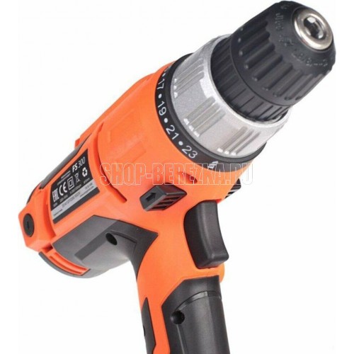 Потребляемая мощность, Вт 300, Наличие реверса, Тип патрона быстрозажимной, Диаметр патрона, мм 10, Количество скоростей 2, Прорезиненная рукоятка, 1 скорость, об/мин 0-350, 2 скорость, об/мин 0-1350, Прорезиненный морозостойкий кабель, Регулировка скорости, положений, Макс. крутящий момент, Нм 35, Число ступеней крутящего момента 23+1, Макс. диаметр сверления (сталь/дерево), мм 10/20.