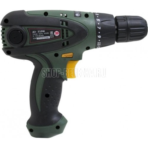 Потребляемая мощность 310 Вт Частота вращения шпинделя на холостом ходу 0-750 об/мин Диаметр зажимаемого сверла 0,8-10 мм Тип патрона быстрозажимной Максимальный крутящий момент 18 Нм Кол-во положений регулировки крутящего момента 20+1 Длина шнура питания, не менее 2 м Электродвигатель однофазный коллекторный