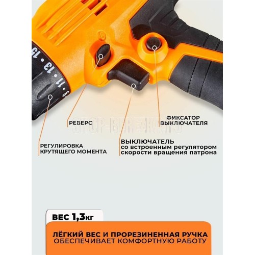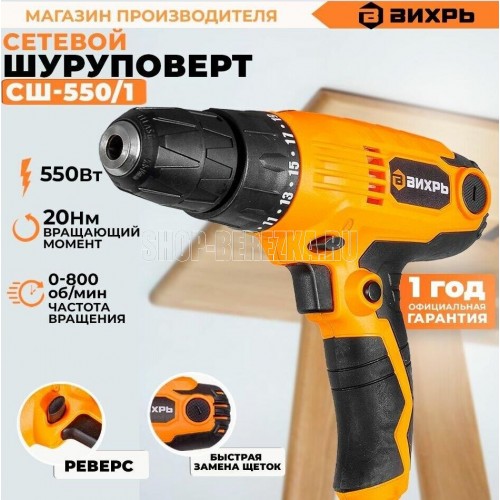 Тип сетевой. Мощность, Вт 550. Тип двигателя щеточный. Ленточные (магазинные) нет. Тип патрона быстрозажимной. Размер зажимаемой оснастки, мм 0.8-10. Число скоростей 1. Регулировка частоты вращения есть. Наличие удара нет. Max крутящий момент , Нм 20. Max диаметр сверления (металл), мм 10. Мах диаметр сверления (дерево), мм 25. Вес нетто, кг 1,3. Частота вращения шпинделя, об/мин 0-800. Наличие реверса есть. Число ступеней крутящего момента 19+1. Жестк. вращ. момент, Нм 20.