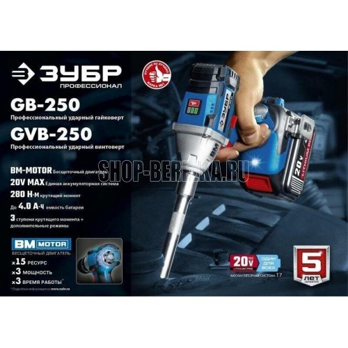 ЗУБР GB-250-22 20В, 2аккум., бесщеточный