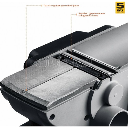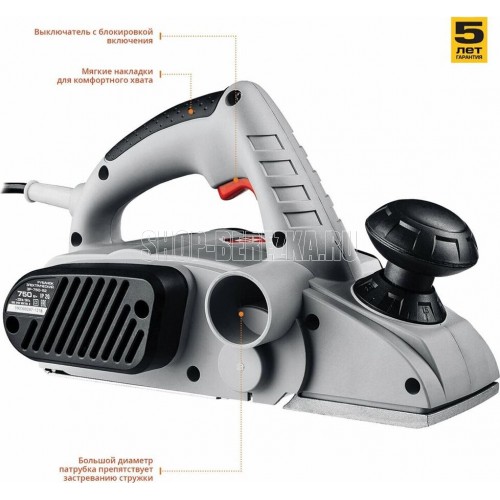 Мощность, Вт 750 Частота вращения, об/мин 16000 Ширина обработки, мм 82 Глубина строгания, мм 0-2 Блокировка включения есть Параллельный упор есть Система удаления опилок есть Длина кабеля, м 2