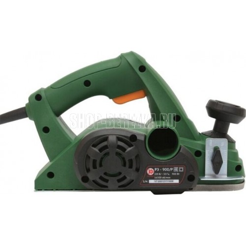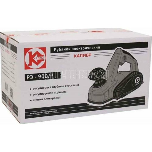 Ручной электрический рубанок Калибр РЭ-900/Р предназначен для строгания пиломатериалов из древесины различных пород.V – образная канавка на рабочей поверхности передней подошвы,позволяют производить снятие фасок при изготовлении элементов деревянных конструкций.Регулировка глубины строгания; Блокировка клавиши выключателя.Характеристики,Потребляемая мощность 900 Вт,Число оборотов на холостом ходу 16500 об/мин,Ширина строгания за один проход 82 мм,Глубина строгания 0-3 мм,Размеры ножа (ДхШхТ) 82х5.7х1.2 мм,Электродвигатель однофазный коллекторный,Тип передачи ремённая,Класс безопасности (ГОСТ Р МЭК 60745-1-2011) II,Длина шнура питания,не менее 2 м,Номинальное напряжение/Частота 220 В/50 Гц,Габариты в упаковке (ДхШхВ) 305х170х170 мм,Вес (брутто/нетто) 3.0/2.7 кг.