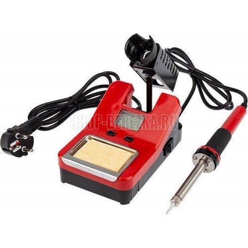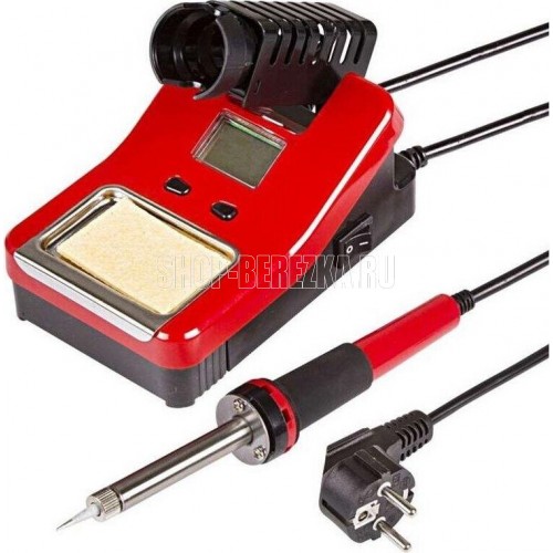 Паяльная станция (160...520 °С) цифровой дисплей 230 V/48 Вт предназначена для ручного монтажа радиоэлементов. Её можно использовать как в домашних условиях, так и в профессиональных лабораториях. Специально разработанный современный корпус имеет компактный и стильный дизайн. Для профессионального контроля темп нагрева жала паяльника на корпусе расположены кнопки регулировки и цифровой дисплей с синей подсветкой. темпный диапазон нагрева жала варьируется в пределах 160...520°С. Станция комплектуется паяльником оптимальной мощности 40 Вт, металлическим держателем паяльника, губкой для очистки жала в ложементе. Pпотр станции: AC 230 V/48 Вт. Данная паяльная станция является комплектом с лучшим соотношением цены и качества.