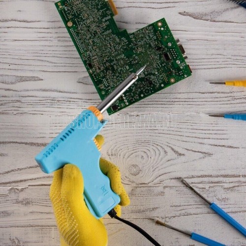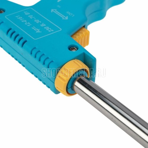 Паяльник импульсный 30-70 Вт предназначен для ручного монтажа радиоэлементов. Он используется для пайки электродеталей в двух мощностных режимах: 30 Вт и 70 Вт. Особенность данного инструмента заключается в том, что максимальная P и ускоренный разогрев активируются нажатием и удержанием курка. Это позволяет оператору сначала установить жало инструмента в определенную точку пайки, а затем нажатием кнопки на корпусе перевести паяльник в максимальный рабочий режим. Паяльник выполнен в форме пистолета с индикатором включения и имеет очень удобную эргономичную рукоятку из ударопрочного пластика. Характеризуется экономичным энергопотреблением. Длина провода: 1,35 м. Удобен для распайки кабелей в шкафах, а также быстрых демонтажных работ.