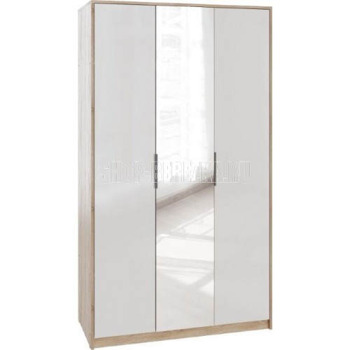 МЕБЕЛЬ-КОМПЛЕКС Нордик Шкаф 3-х створчатый с зеркалом Дуб сонома/Белая Аляска