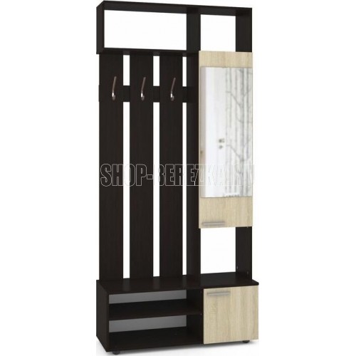 «Милан» - на вид маленькая, но очень вместительная прихожая. Она станет отличным вариантом для небольшого помещения. Компактный дизайн и высокая функциональность - два её главных качества. Прихожая оснащена крючками для одежды и сумок, а внизу располагаются две полочки для обуви. Сверху расположены полки для хранения головных уборов. Шкафчик с зеркальной дверью укомплектован четырьмя полками. Прихожая выполнена из качественного и экологичного материала, устойчивость конструкции обеспечивается за счёт устойчивых ножек. В*Г*Ш 2200*362*1000 мм Сборка: универсальная. Материал каркаса: ЛДСП венге Материал фасадов: ЛДСП дуб сонома