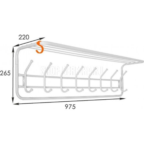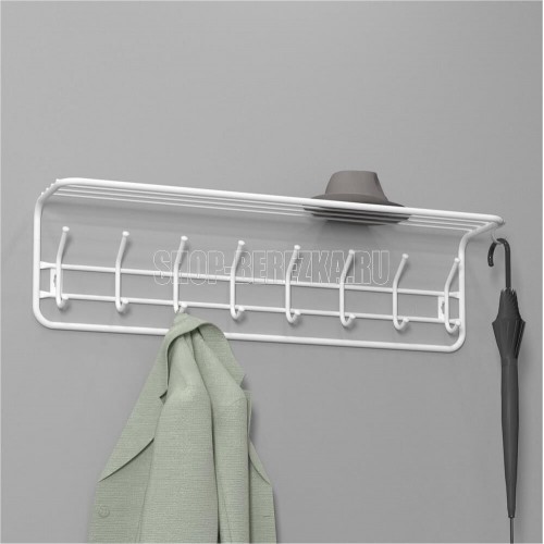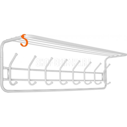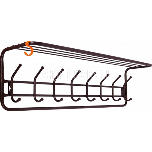 Надежная сборно-разборная конструкция. — компактная вешалка с 8-ю крючками. — удобная полка для хранения головных уборов. — допустимая нагрузка до 5 кг на крючок. — Удобный пластиковый крючок для мелочей. — Расстояние между крепёжными отверстиями 875 мм. Материал Сталь, полимерное покрытие. Габариты (Д*Ш*В) 98х22х26,5 см.