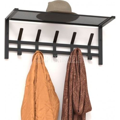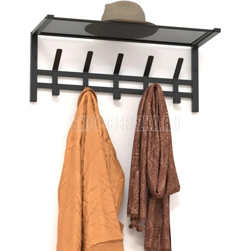 Назначение Для размещения одежды. Материал Сталь, полимерно-порошковое покрытие, пластик. Габариты (Д*Ш*В) 67 х 27 х 27 см. Максимальная нагрузка, кг до 5 кг на крючок. Уход Протереть влажной тряпочкой с мыльным средством. Температура применения, °C от 0 °C до +30 °C.