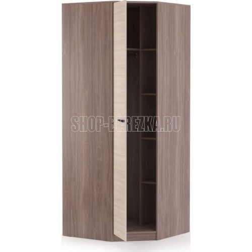 Шкаф угловой Оптима подойдет тем, кто хочет сэкономить свободное пространство в центре помещения и при этом с максимальной пользой задействовать место в углу комнаты. Эта модель может стать как самостоятельным предметом вашей обстановки, так и одной из частей вместительной системы хранения вещей. Внутри изделие поделено на две части: левая половина предназначена для размещения одежды на плечиках, правая оборудована пятью полками для текстиля, нижнего белья, вязаных свитеров. Шкаф можно дополнить другими элементами коллекции Оптима: пеналами, 2-х и 3-х дверными шкафами, комодами, вешалками и тумбами для прихожей. Ручки: пластик. Коллекция Оптима Ширина 850 Высота 2 110 Глубина 850. Цвет фасадов Шимо светлый Цвет каркасов Шимо темный Материал фасадов ЛДСП Материал каркасов ЛДСП Тип мебели Шкаф Срок службы (мес.) 120 Гарантия (мес.) 24