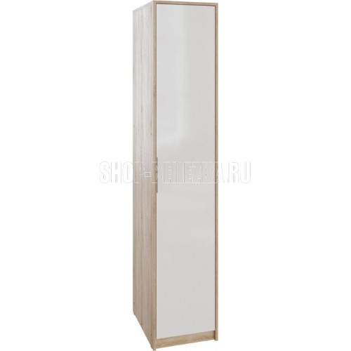 Шкаф - пенал Нордик - удобная и практичная система хранения вещей в спальной комнате, детской или гостиной. Сочетание декоров натурального дерева и белого цвета подчеркнет современный стиль Вашего интерьера. Шкаф удачно впишется даже в небольшую квартиру благодаря своей компактности и зрительной легкости. Внутри шкафа расположены пять вместительных полок для хранения одежды и постельных принадлежностей. Шкаф можно дополнить другими элементами коллекции Нордик: комодом, прикроватными тумбами, тумбой под ТВ, письменным столом. Материал каркаса: ЛДСП дуб сонома Материал фасадов: ЛДСП белая аляска Ручки: металл Коллекция Нордик Ширина 418 Высота 2 110 Глубина 575 Цвет фасадов Белая Аляска Цвет каркасов Дуб сонома светлый Материал фасадов ЛДСП Материал каркасов ЛДСП Тип мебели Шкаф Срок службы (мес.) 120 Гарантия (мес.) 24