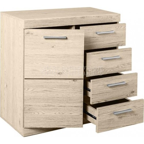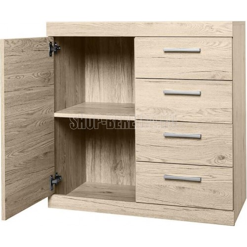 Тумба 1D4S OSKAR не занимает много места, но в то же время очень вместительный. Благодаря этому он является функциональным местом хранения. Большое количество ящиков и их внутреннее пространство можно использовать на 100%, а на верхнюю поверхность комода можно поставить телевизор, часы, статуэтки или дополнить его зеркалом.