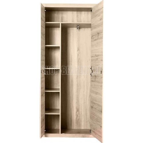 Шкаф Оскар 2DG создаст современный и домашний интерьер молодёжной комнаты, спальни, прихожей. Шкаф Оскар 2DG прямой. Конструкция элемента представляет собой одно гардеробное отделение с двумя штангами и нишей сверху за двумя глухими дверями (2D). Двери распашные, крепятся на петли к боковому корпусу изделия. Функционал элемента может быть расширен за счёт дополнительного комплекта полок с двумя короткими штангами и перегородкой.