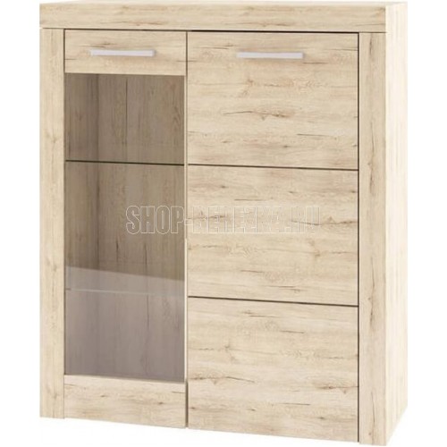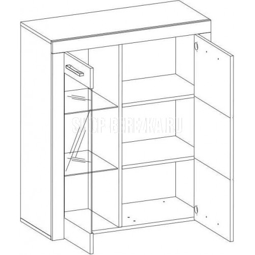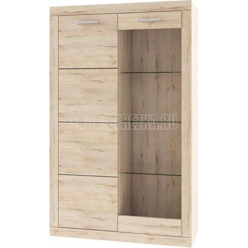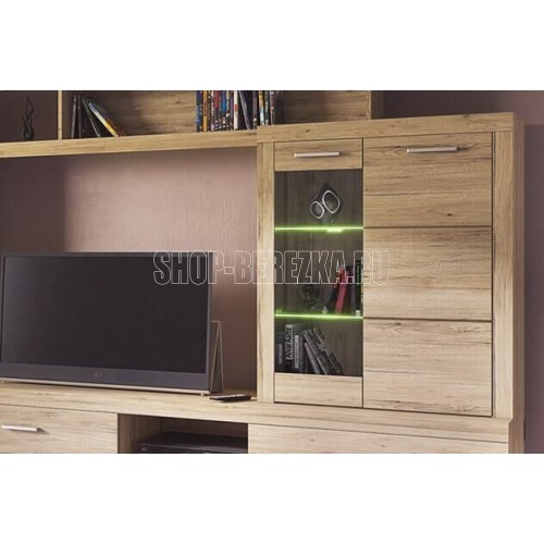 Шкаф-витрина Оскар 1V1D правильно и компактно организует пространство, сделает его свободным, но в то же время удобным. Модуль рекомендуется устанавливать на тумбу RTV 2S2NB. Шкаф-витрина 1V1D прямой. Конструкция элемента представляет собой одно отделение с полками из закалённого стекла (6 мм) за витриной (1V – закалённое стекло, 4 мм), одно отделение с полками из ЛДСП за глухой дверью (1D). Витрина и дверь распашные, крепятся на петли к боковому корпусу изделия.