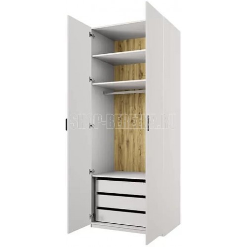 Размер (ШхВхГ, см): 90 х 230 х 60 Материал фасада: Высококачественный МДФ Материал корпуса: Высококачественное ЛДСП Цвет корпуса: Персидский жемчуг/Дуб наварра Цвет фасада: Персидский жемчуг Цвет ручек: Темно-серый Цвет вставок: Ирландский ликер