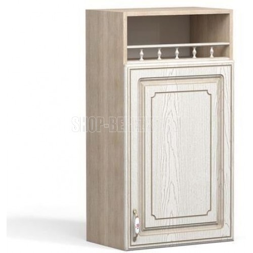 В комплект модуля шкаф навесной на 500 мм ШКН 500 П входит корпус + фасад , балюстрада. Багет верхний в комплект не входит, рассчитывается отдельно на всю длину кухни. Фасады МДФ + пленка ПВХ Корпус изготавливается из ЛДСП. Шкаф навесной на 500 мм с глухим фасадом и полочкой с балюстрадой, удобный и вместительный, с одной внутренней полкой. Дверца навешивается с любой стороны. Корпус изготавливается из ЛДСП. Фасады выполнены из МДФ, окрашены, патина нанесена вручную, сверху защищены матовым итальянским лаком. Габариты высота: 920 мм Габариты ширина: 500 мм Габариты глубина: 300 мм Стиль: Классика Геометрия: Прямой Материал каркаса: ЛДСП Материал фасада: МДФ. Цвет корпуса: ясень Цвет фасада: ясень