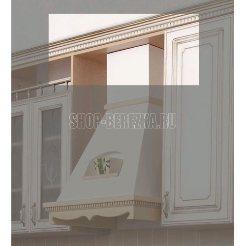 Полка для вытяжки не несет нагрузочную функцию, а служит для декоративных целей. Она монтируется "вокруг" декоративной крышки воздуховода, чтобы между вытяжкой и соседними шкафчиками не образовывалось пустое пространство и, чтобы закрыть видимую часть воздуховода и его присоединения к вытяжке. На нее также размещается верхний багет, Габариты ВхГхШ: (50х300х600) мм. Стиль: Классика. Материал каркаса: ЛДСП Материал фасада: МДФ. Цвет корпуса: ясень