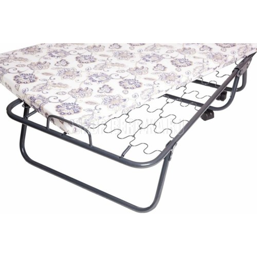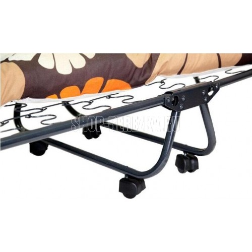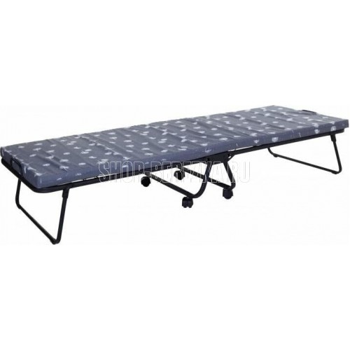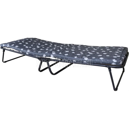 Габаритные размеры в разложенном положении (длина х ширина х высота), мм: 1900х700х397. Габаритные размеры в сложенном положении (длина х ширина х высота), мм: 700x340х1135. Максимальная нагрузка, кг : 100. Каркас: основание и опоры - труба стальная ф22*1,4 опоры центральные ф25х1,0; опоры крайние ф19х1,0; полимерное покрытие пружина-змейка – 15шт. пружина – 6шт. опоры мебельные – 4шт. Матрас: ткань 45% п/э – 55% хлопок, плотность 108 – 111 г/м2, наполнитель матраса поролон листовой (толщиной – 50мм) Размер упаковки (длина х ширина х высота), мм: 727х261х1120. Вид упаковки: термоусадочная пленка, картон гофрированный. Вес изделия: нетто, кг - 13,0.